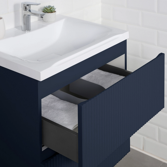 Тумба Итана Kate 65 с фактурными фасадами оснащена двумя удобными ящиками для хранения и качественной фурнитурой с доводчиками. Изготовлена из МДФ и покрыта ПВХ пленкой.